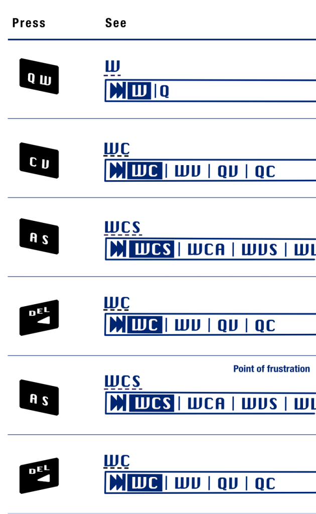 Through iterative testing, my colleague and I learned a lot about mental models around how the text worked. There were some common stumbling points. I pulled in the lead tech writer for the project. She and I came up with a series of tips about how the typing works. The idea was to see if we could improve performance if people read something short about how it works.